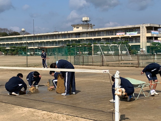 日曜日に息子のテニス部は三送会を予定していたので、練習どころかコートに溜まった雨水をスポンジで取っては捨てを繰り返し、砂を入れて翌日の三送会の準備をしたのに・・・